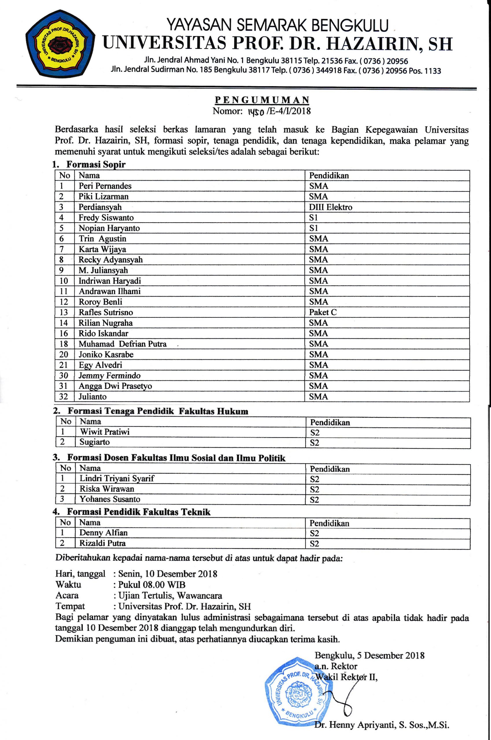 UNIHAZ Bengkulu -UNIHAZ Menggelar Upacara Pelantikan dan Serah Terima Jabatan Wakil Dekan Fakultas Hukum, Fakultas KIP, dan Fakultas Pertanian Untuk ...