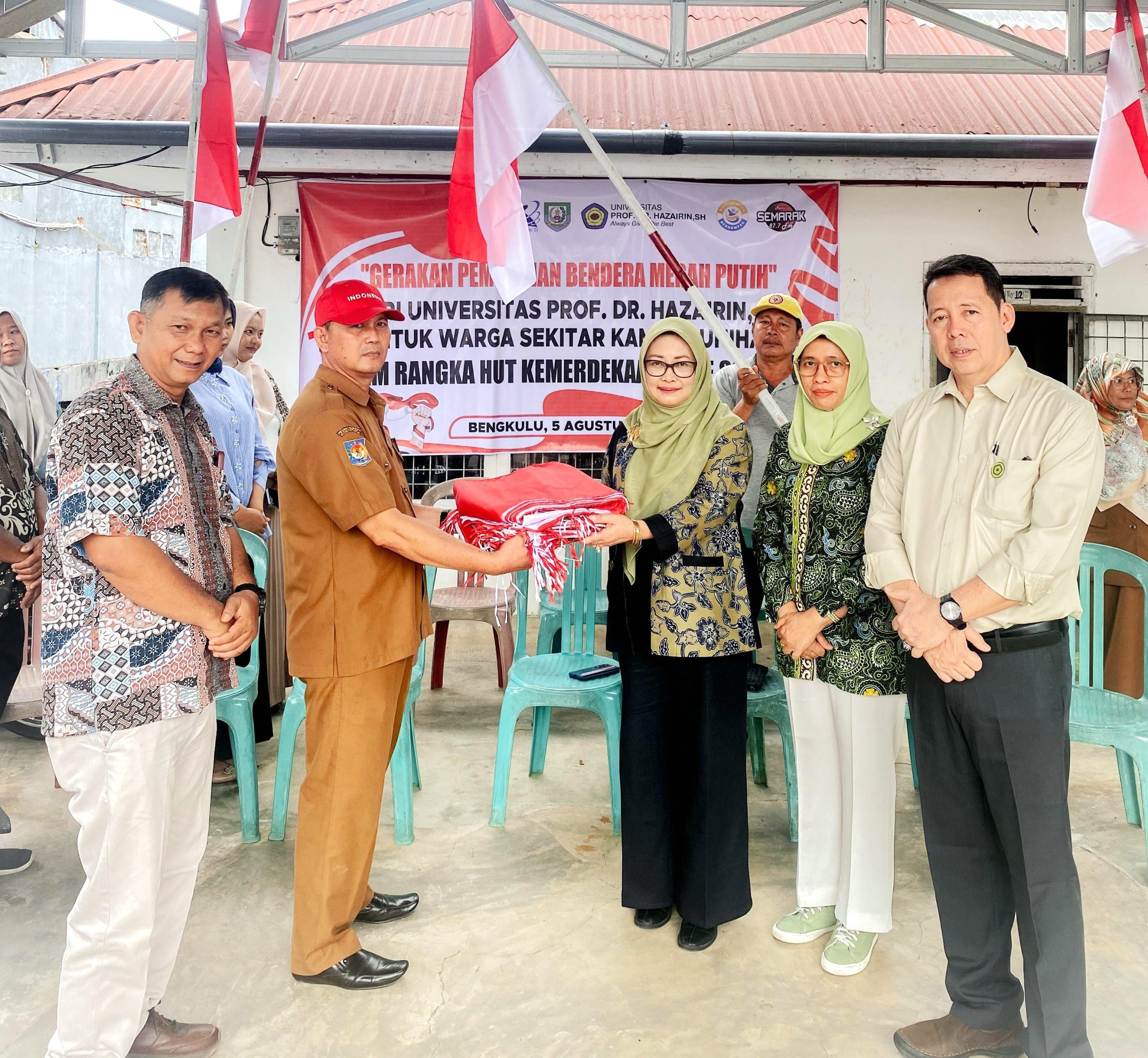 Gerakan Pembagian Bendera Merah Putih kepada warga yang tinggal di sekitar lingkungan kampus UNIHAZ