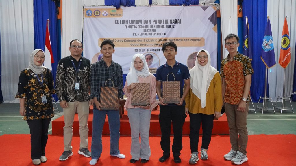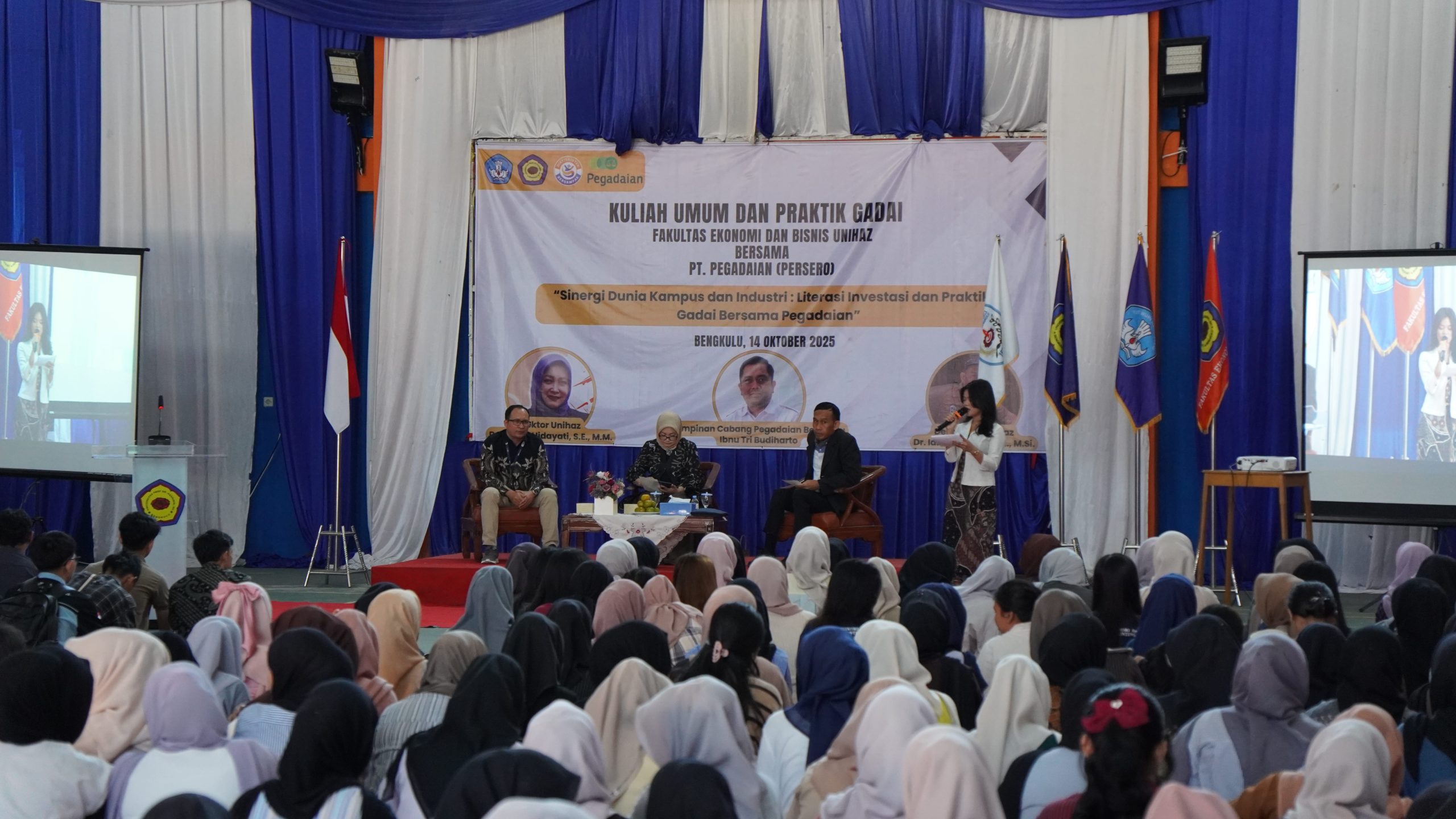 Bengkulu – Selasa, 14 Oktober 2025, Fakultas Ekonomi dan Bisnis (FEB) Universitas Prof. Dr. Hazairin, S.H. (Unihaz) Bengkulu menyelenggarakan kegiatan Kuliah Umum dan Praktik Gadai bekerja sama dengan PT Pegadaian (Persero). Kegiatan bertema “Sinergi Dunia Kampus dan Industri: Literasi Investasi dan Praktik Gadai bersama Pegadaian” ini berlangsung di Aula Gedung Fakultas Ekonomi dan Bisnis Unihaz dan diikuti oleh ratusan mahasiswa dari berbagai program studi.